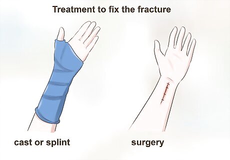 Have your fracture fixed. Following your exam and an X-ray or MRI, your doctor will let you know if you have a growth plate fracture. The treatment to fix the fracture will depend on its severity. Fractures that are less severe may need a cast or splint. You may require surgery for more serious fractures. Each treatment helps the growth plate and bone heal properly. This can prevent permanent damage or deformity. Your doctor may set the plate and bone in a cast or splint if your break isn’t severe. You may need surgery if the break is unstable or your bone fragments are displaced. Surgery generally sets the bones in place with screws, wires, or metal plates.
