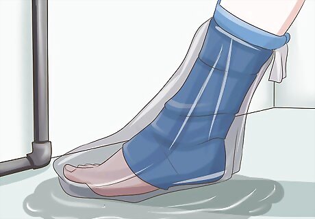 Cover your cast. Part of treatment for your fracture is taking care of your cast or splint, or surgical site. This allows your fracture to heal properly and may prevent complications. Your cast keeps the fractured area together. It can also minimize pain, swelling, and muscle spasms. Put a piece of heavy plastic, such as a garbage bag, around the cast when you shower or bathe. Wrap a washcloth around the edges to stop or reduce water seepage as well as skin irritations or infections. Keep any padding intact. Let the doctor know it is bothering you and they may be able to change it.