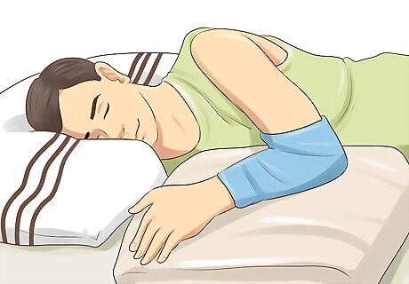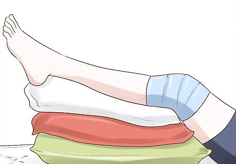 Elevate the fractured area. Elevation is another way to reduce swelling and preserve mobility. If your fracture is on your arm or leg, prop it up above your heart with a pillow or other soft object. Do this any time you have swelling or discomfort. Elevate the area for as long as you can. Use a piece of furniture with some pillows to elevate your leg. Consider lying on your bed with the fractured area propped up on pillows for even better elevation and relaxation.
