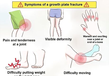 Identify symptoms of a growth plate fracture. You may have pain or discomfort and dismiss it as a minor injury. But a growth plate fracture can be serious and affect the way your bone grows. Identifying the symptoms of a growth plate fracture can ensure that you get proper treatment. It can also help the bone heal properly and prevent stunted bone growth or deformity. A growth plate fracture may include: Pain and tenderness at a joint Difficulty moving Difficulty putting weight or pressure on the joint area Warmth and swelling near a joint or end of a bone Visible deformity