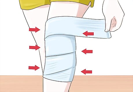 Compress the fractured area gently. Just like ice, compression can minimize swelling and pain. Apply a compressive elastic bandage to your fracture area if your doctor allows it. Keep the area lightly compressed until the swelling is gone or your doctor instructs you to remove it. Recognize that compression can minimize the risk of losing mobility.