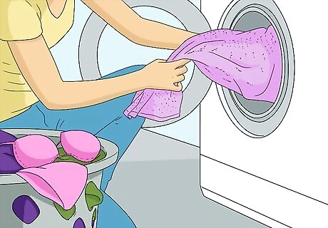 Wash all your bathing suits. Algae can actually hide away and grow on things like swim suits and towels. To prevent your clothes from re-infecting the pool, wash all your bathing suits and towels in a washing machine. When the garments and towels are dry, dry them in the dryer to kill any leftover algae.
