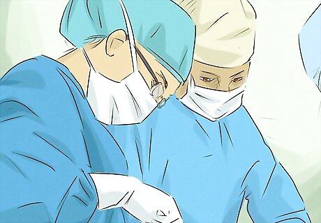 Prepare for surgery if your aneurysm has ruptured or is growing quickly. Your doctor will let you know if surgery is necessary. If it is, expect to be admitted for surgery the same day or next-day. It's a major procedure, but surgery for aneurysms is common and has a comparatively low risk of complication. The two most common types of surgery for an aneurysm are surgical clipping and endovascular coiling. For a surgical clipping, a neurologist will access the ruptured blood vessel through your skull. They will place a tiny metal clip on the rupture to prevent any further blood loss. Endovascular coiling involves snaking a plastic tube from an artery to the aneurysm. A surgeon will push a soft platinum wire through the tube to the aneurysm, where it is coiled up and essentially seals the aneurysm. In some cases, your doctor may opt for flow diverter stents. These are surgically put in place to reroute blood flow around the aneurysm. This is a newer procedure but is generally lower risk if you're nervous about more traditional options.