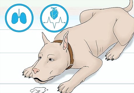 Watch for signs of trouble breathing or moving in your dog. The initial symptoms of anaphylaxis (itching, vomiting, etc.) will eventually progress to shallow, rapid breathing, weakness or coldness in the limbs, and general lethargy. Your dog may also begin drooling excessively, even if there’s no food around. You may also notice irregularities in your dog’s heartbeat; it may have a weak pulse or an elevated heart rate. Some dogs may not show any early signs and may instead progress straight to collapsing.