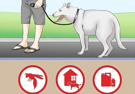 Avoid exposing your dog to allergens. Anaphylactic reactions often get worse after each episode, so it’s important to keep your dog away from whatever caused its first reaction. This might mean preventing your dog from coming into contact with stinging insects by keeping it inside as much as possible, or keeping it away from environmental pollutants and harsh chemicals. If you’re not sure what caused your dog’s first anaphylactic reaction, the best thing to do is to keep it away from whatever environment it was in where it first went into anaphylactic shock. For instance, avoid walking your dog in the park where it first developed anaphylaxis.