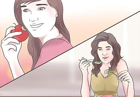 Follow a heart-healthy diet. Following a healthy diet is one of the most important things you can do to treat angina and keep your heart healthy. This means eating a diet that is rich in fruit and vegetables, high in fiber and low in cholesterol. Eating whole grain foods is important, as whole grains are high in fiber (which lowers cholesterol) and help you to feel fuller for longer, which prevent the chest discomfort brought on by overeating. In terms of protein, you should opt for low cholesterol animal products, like lean meat and skinless turkey or chicken. For more information on eating a heart-healthy diet, see this article.
