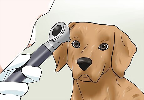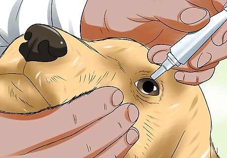 Take your dog to the vet. To get a proper diagnosis for your dog, you need to take him to the vet. The vet will perform an examination of both eyes to determine which eye is the problem, what is wrong with it, and how inflamed or sore it may be. The vet will probably also examine the eyelids and eyelashes to look for rubbing on the surface of the cornea, such as an inturned eyelash. As well as treating the ulcer, it is important to correct any underlying health problems, such as dry eye or underactive thyroid glands, to prevent the problem recurring. Your vet may perform a full examination to determine if your dog has any other problems related to the ulcer.