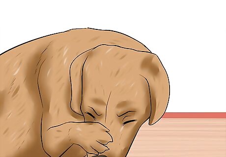 Watch for your dog rubbing his eye. Since corneal ulcers are painful, the dog’s eye will bother him because it hurts. This means your dog may rub his eye. Your dog might also squint with the affected eye and hold it partially closed. The discomfort and pain from the ulcer may also cause your dog’s eye to water. Your dog might do this by rubbing the affected side of the face along the ground or rubbing at the eye with a paw. To figure out if your dog is squinting, look at the dog’s face. If one eye looks smaller than the other, then the dog may be squinting. If you suspect your dog has a corneal ulcer, put an Elizabethan collar on it so it can't scratch its eye anymore.