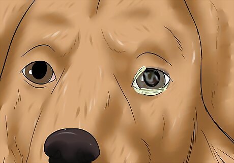 Watch for red or cloudy eyes. If your dog has a corneal ulcer, the white part of the eye may be red or have a pinkish color. The surface of the cornea is usually clear, but if your dog has an ulcer it may have a cloudy or milky appearance. This might look like a film over the eye.