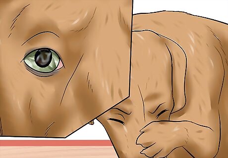Look for eye sensitivity. Because of the pain and discomfort of the eye, your dog may have a new sensitivity to light. He may shy away from bright lights, or squint in bright areas. Your dog may also keep the affected eye closed. Your dog may also flinch if he goes from a darker inside to bright sunshine outside.