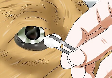 Monitor for discharge. If your dog has a corneal ulcer, he may also have a discharge from the eye. The discharge may be bloody or even pus-filled. This discharge may gather in the corner of the eye, nearest to his nose. Sometimes the area beneath the affected eye may be wet or damp.