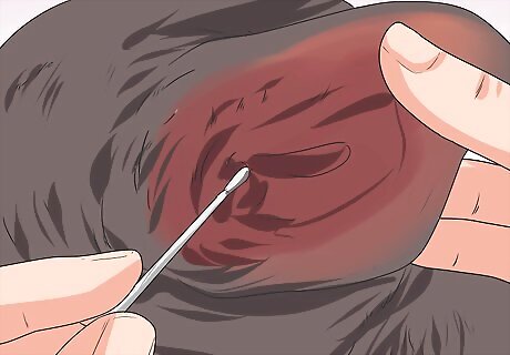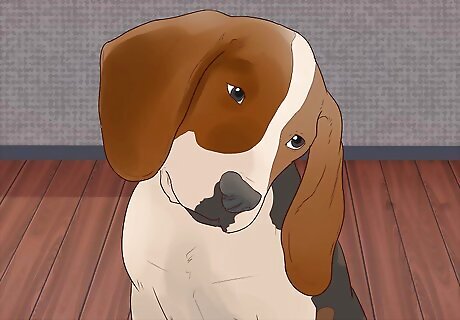 Observe your beagle’s behavior. Your beagle won’t be able to hide his ear infection. He will scratch and paw at his ears, and shake his head. In addition, he might rub his ears on nearby objects to relieve the itch. If the ear infection is really bothersome, your beagle may shake his head so much that a large blood clot, called a hematoma, forms in his ear. Your beagle may feel so miserable that he becomes withdrawn. If you try to touch your beagle’s ears, he may cry out or whine. He may even become aggressive because of how sensitive and painful his ears feel.