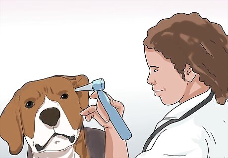 Schedule an appointment with your vet. Ear infections in beagles need immediate care. In addition to making your beagle feel even more miserable, an untreated an ear infection could lead to permanent hearing loss and cause illness in other parts of his body.