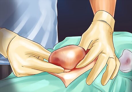 Allow your vet to perform surgery. If surgery is a good option for your cat, your vet will surgically remove as much of the tumor as possible. Because lymphoma often spreads to other organs, your vet will likely take biopsies of other digestive organs, such as the liver and pancreas, to determine if the cancer has spread. Your vet will send these samples to a pathologist, who will analyze the samples under a microscope to look for cancerous lymphocytes. Rather than just removing the tumor, your vet will remove the section of intestine containing the tumor. Your cat will need some time to recover at your vet's office. Your vet or a member of their staff will contact you to let you know when you can take your cat home.