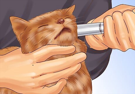 Have your vet administer intensive supportive care. Some cats with intestinal lymphoma are very sick. They may have lost a lot of weight or become anemic (low red blood cell count). If your cat is extremely sick, it will need intensive supportive care before beginning chemotherapy. This care may include fluid therapy (to rehydrate your cat), placement of a feeding tube, or a blood transfusion. A feeding tube would be used only if your cat is not vomiting. This tube could be placed either down your cat's esophagus or directly into its stomach. Once your cat is a little stronger, it can start receiving chemotherapy.