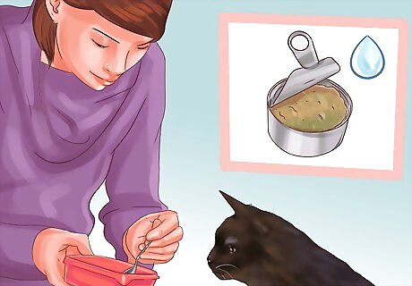 Feed your cat a healthy diet. If your cat is well enough to eat on its own, feed it a healthy diet at home. This diet should be highly digestible and tasty. If your cat has any specific nutritional needs, your vet will recommend a diet that will meet those needs. Cats especially like canned foods. Your cat may be able to eat canned food more easily than dry food during treatment. If your cat doesn't feel like eating during treatment, your vet may prescribe an appetite stimulant.