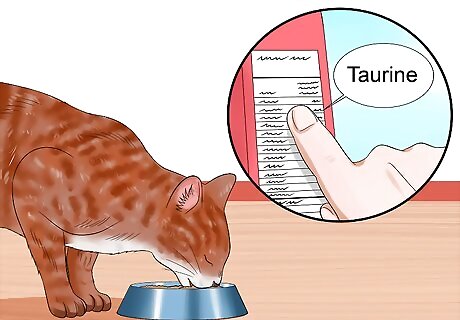 Ensure your cat receives enough dietary taurine. Taurine, which is found only in animal-based proteins, is an essential amino acid for cats—their bodies cannot produce enough of it, so they must receive it through food. The Association of American Feed Control Officials recommends canned foods contain 0.2% taurine. Check the nutrition label of your cat’s canned food to see if it contains the recommended percentage of taurine. Several recommendations exist on the actual amount of taurine a cat should receive, one of which is to feed a cat 75 to 100 mg of taurine per day. If your cat’s current diet does not have enough taurine, talk to your vet about high-quality taurine supplements. Excess taurine is not a problem in cats; the excess is eliminated through the urine.