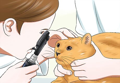 Take your cat to your vet. When you notice your cat is losing her vision, take her to your vet. In addition to performing a regular physical exam, your vet will do a thorough eye exam using an instrument called an ophthalmoscope. They may refer you to a veterinary ophthalmologist for a more detailed eye exam. Your vet will also perform routine bloodwork and an analysis of your cat’s urine. Since high blood pressure is a common cause of retinal detachment, your vet may also measure your cat’s blood pressure. Provide a detailed history of your cat, including when the vision loss started, any possible trauma or exposure to toxins, and diet. Since the 1980s, commercial cat diets have been fortified with taurine, an amino acid whose deficiency can cause vision loss in cats. Your vet will want to know if your cat is receiving enough taurine in her diet.