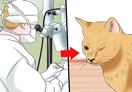 Consider surgery. For retinal detachment, a few surgical treatments (laser retinopexy, retinal cryopexy) are available to reattach the retina to the back of the eye. These treatments use lasers to create scar tissue on the retina; this scar tissue would act like a seal between the retina and the back of the eye. These surgical methods, unfortunately, are not always successful. If your vet recommends surgical treatment, they would likely refer you to a veterinary ophthalmologist.