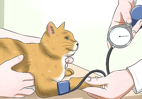 Lower your cat’s blood pressure. If your cat’s retinal detachment and subsequent blindness are due to high blood pressure, then your vet will need to lower her blood pressure quickly. Lowering her blood pressure could restore her vision. However, if her retinas have been detached more than 1 or 2 days, it is unlikely that her vision will be restored. High blood pressure causes blood vessels to bleed beneath the retina. The excess blood forces the retina to detach from the rest of the eye. Even if your cat does not get her vision back, maintaining normal blood pressure will be important for her overall health.