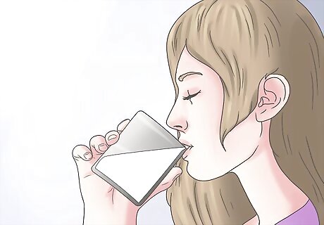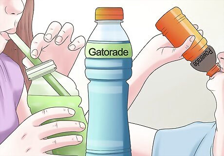 Drink lots of fluids to help pass smaller kidney stones. The more hydrated you are, the more urine your body will produce. If the kidney stone you are dealing with is small enough, filling your body with water and other fluids could flush the stone out with your urine. Drink upwards of 10 glasses of water a day to really hydrate yourself and see if you can flush the stone out. If you get bored drinking water, add some fruit juice, like lemon, to the water to give it some flavor. You could also drink hydration sports drinks like Gatorade or Powerade. Coconut water is also a good option for hydration.