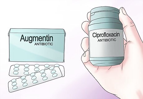 Take antibiotics to treat kidney infections. Horseshoe kidneys are prone to bacterial infection. You will have to have your urine examined to figure out what bacteria is in your kidney. You will then have to get a prescription for an antibiotic that will get rid of the infection. It is important that you finish your whole antibiotic treatment, even if you start feeling better within the first couple of days. If you stop too soon, the infection may come back. Some of the common antibiotics used for kidney infection include ciprofloxacin and a combination of amoxicillin and clavulanic acid, which is called Augmentin.