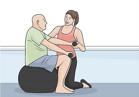 Get physical therapy to improve your strength and mobility. In addition to involuntary movements, Huntington’s can cause muscle rigidity and loss of coordination. Physical therapy can help you manage these issues and maintain your mobility for as long as possible. Work with your physical therapist to learn exercises and stretches that help you build strength and improve your flexibility, balance, control, and coordination. Ask your doctor to refer you to a physical therapist who has experience treating Huntington’s disease. If you have a genetics team from a health institute or large university, they may also be able to find a physical therapist knowledgeable in Huntington’s. Your therapist can also help you learn to use assistive devices, such as a walker or wheelchair. You’ll need to have regular visits with your physical therapist to adjust your exercise routine as your mobility level changes.