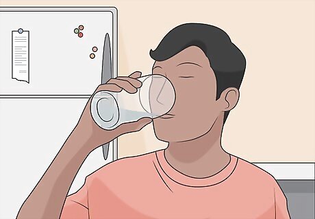 Stay hydrated. It’s difficult to get all the fluids you need when you have Huntington’s. To stay healthy and keep your energy levels up, make sure you drink plenty of fluids or eat foods that are high in fluid content, such as soups, nutritional shakes, or smoothies. It may help to set a timer to remind you to drink at regular intervals. While maintaining your fluid intake is important, avoid drinking a lot right before or during a meal. Drinking during a meal can make you feel full too quickly and make it harder for you to get all the calories you need. Drink plenty of high-calorie beverages, such as shakes, whole milk, or coffee and tea beverages with sugar and cream.