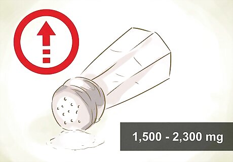 Eat more salt in your diet. Salt raises your blood pressure, so if you don’t have high blood pressure, you can increase the amount of salt that you eat to 6-10 grams daily. Only do this with your doctor’s help, because too much salt can raise your blood pressure too high. The ideal blood pressure is 120/80.