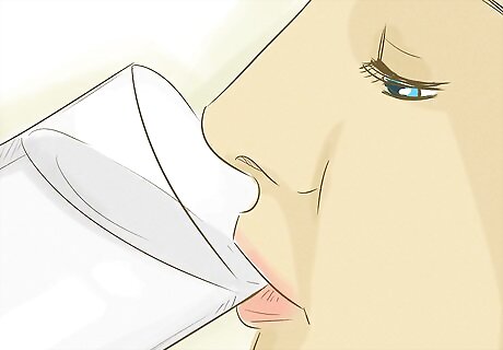 Stay hydrated. Dehydration is a common cause of low blood pressure. In general, men should drink around 13 cups of water and other fluids daily (about 3 liters), and women should aim for 9 cups (2.2 liters). Drink more if you sweat a lot, work out, or live in a hot climate. Drink extra fluids if you have diarrhea, vomiting, or a high fever. If you’re really nauseated, try sucking on ice chips or popsicles. If you’re dizzy, quickly drink 2 8-ounce glasses of cold water.