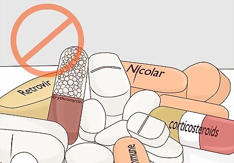 Stop taking any medications that can cause the condition. In addition to injuries, some drugs can also cause rhabdomyolysis if you have an underlying medical condition. These include statins, antivirals, and antipsychotics. If you’re on these medications and show rhabdomyolysis symptoms, the doctor will probably take you off them. Some drugs that have caused the condition are Nicolar, Sandimmune, Retrovir, Erythromycin, and some corticosteroids. Usually people only experience rhabdomyolysis from these medications if they have a serious liver condition, meaning their bodies can’t process the drugs correctly. Remember that rhabdomyolysis is a rare condition and it’s extremely unlikely that taking these medications will cause it. Don’t be afraid if your doctor prescribes them for you.