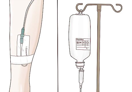 Flush the myoglobin out of your body with an immediate IV drip. Removing the myoglobin as soon as possible is the main way to prevent lasting damage from rhabdomyolysis. Doctors do this with a saline IV drip to rehydrate you and flush the myoglobin out of your blood. Depending on your condition, this may be done in a normal hospital room or an intensive care unit. The ICU is used for people coming to the hospital with significant injuries.