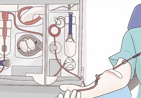 Complete dialysis treatment if the condition damaged your kidneys. If the IV drip doesn’t clear all the myoglobin out of your system or the condition wasn’t diagnosed soon enough, your kidneys may be damaged. In this case, you’ll need dialysis treatment. This treatment pumps fluids into your body and pulls out the waste products that your kidneys can’t process. It prevents further waste buildup and helps you recover. If you received quick treatment, then the dialysis will probably not be permanent. If, however, your kidneys received permanent damage, then you’ll probably need long-term dialysis. This occurs in about 50% of cases.