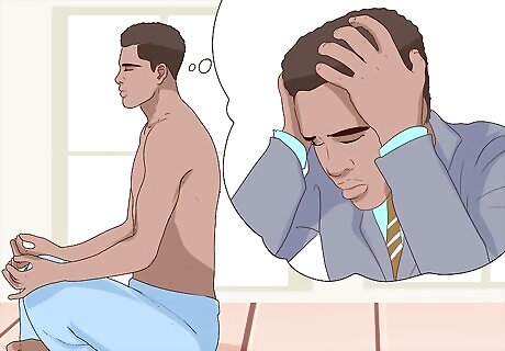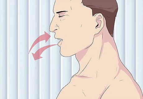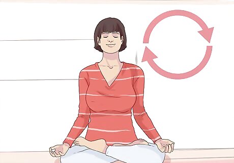 Focus on your breath. The first thing you should do is to relax your body and focus on your breathing. Inhale through your nose, making sure to push your abdomen out as you do so. Exhale slowly, pushing all the air out. This should take two to three seconds. Continue breathing in this way for a few minutes. Pay attention to each breath as you inhale and exhale. Put yourself in the moment and gain awareness of your breathing.