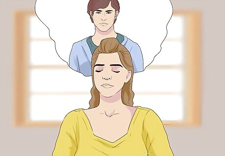 Visualize sending love to this person. As you continue breathing steadily, think about that same light, balloon, bubble, or cloud. Put all your positive and loving feelings in that light, balloon, or bubble. Extend it mentally towards your loved one. Concentrate on the idea that your loved one be free from suffering and become happier. Repeat a phrase like, “I hope you will not suffer anymore” or “I hope you find happiness and peace.”