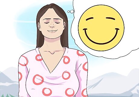 Visualize your suffering leaving you. As you breathe, focus on letting go of your suffering. Imagine that your pain and suffering is connected to a light, balloon, cloud, or bubble. Think about yourself and your feelings and that the light is helping you feel better or that the balloon is filling with the negative feelings. As you exhale, feel each negative thought lessen and drift away. Tell yourself, “I am not free from this pain” or “I will now have peace and happiness.”