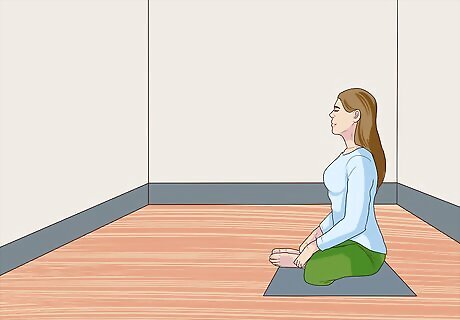 Find a relaxing place. Start your meditation in a quiet, calm environment. You can find a quiet room in your home or a quiet area outside. Get into a comfortable, relaxing position. You can sit down with your legs crossed or lie on the floor. Ask others not to disturb you. Turn off all electronic devices. If you listen to music, make sure it is relaxing, calm music.