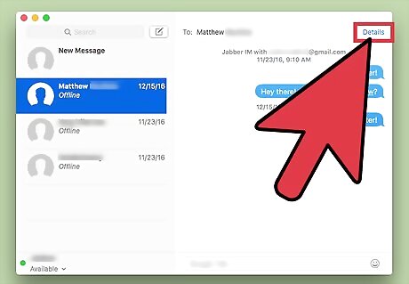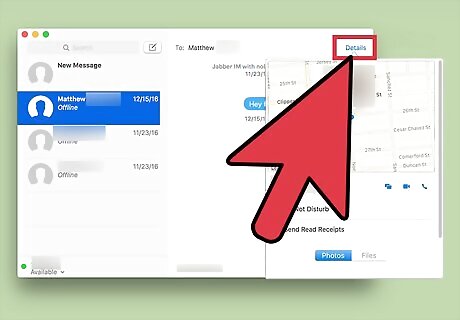 Click Details. This will be in the top right corner of your conversation page.