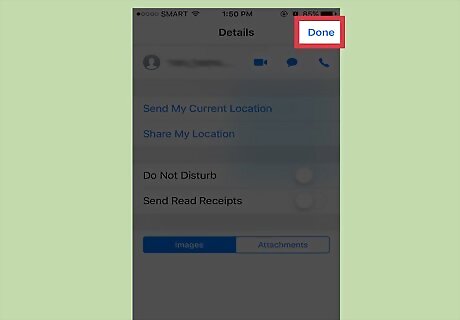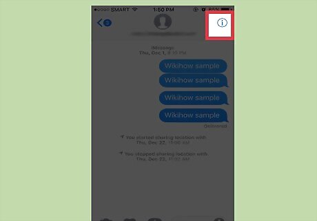 Tap your conversation's "Details" icon. This is the encircled "i" in the top right corner of your screen.