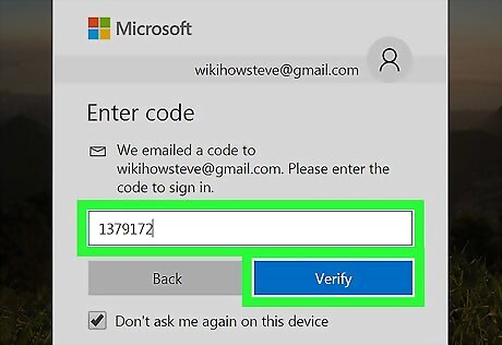 Enter the code and click Verify. The code is either in a text message or email from Microsoft. This will log you into your security options.