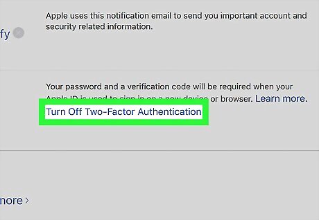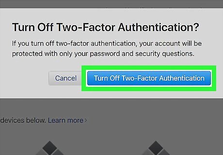 Click Turn Off Two-Factor Authentication. It’s near the bottom of the section. A confirmation message will appear.