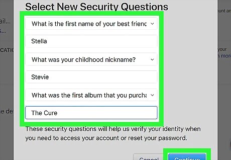 Click Turn Off Two-Factor Authentication. A window to set up new security questions will appear.