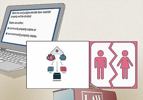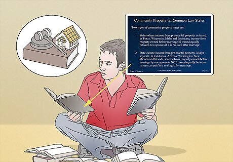 Determine if your state is a “community law state.” If you state is not a common law state it likely is a community law state. As of June 2015, community law states include Arizona, California, Idaho, Louisiana, Nevada, New Mexico, Texas, Washington, and Wisconsin and Alaska (by agreement). Generally speaking, spouses own equally almost all property acquired during the marriage, regardless of whose name is on it, in community law states. Also, half of each partner’s income earned during the marriage is owned by the other partner. As well, debts incurred during the marriage are debts of the couple together. Separate property, in community law states, includes inheritances to one spouse, gifts given to one partner and property owned before the marriage, that is kept separate during the marriage.