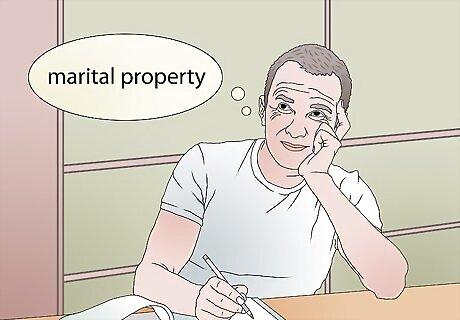 Make note of which property is marital property. Generally speaking, everything you earn or acquire during your marriage is marital property, unless you agree otherwise. For instance, your income and money used to pay household bills are marital property. The vehicle you purchased from your joint account, is marital property.