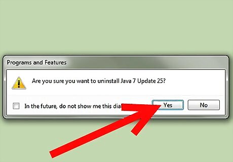 Choose Yes from Programs and Features (Add or Remove Programs) to proceed with the uninstallation process.