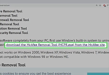 Download the McAfee Consumer Product Removal. If you were not able to remove McAfee Internet Security from your Windows PC using the traditional uninstall steps, you should be able to finish the job with the McAfee Consumer Product Removal (MCPR) tool. You can download the tool. If the tool doesn't automatically download, click Save or Download to save it to your default download location. You should download a new version of the MCPR.exe every time you want to use it. If you have an older version on your computer, delete and redownload it.
