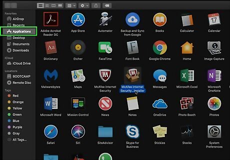 Click the Applications folder in Finder. If you don't see it, click the Go menu at the top of the screen and click Applications.