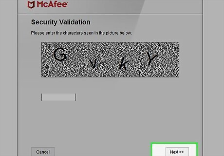 Enter the security validation code and click Next. The code is the combination of letters and numbers that appear at the top of the window. The tool will remove McAfee once the code is validated.