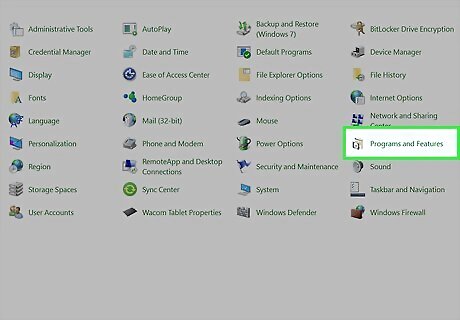 Click Programs and Features. If you don't see this option in the Control Panel, click the "View by" menu at the top-right corner of the window, and then select Small icons. You should see it then.