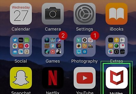 Tap and hold the McAfee Mobile Security app on your home screen. It's the red and white icon that says "McAfee". A pop-up menu will appear. If you're using an older version of iOS, the icons may begin to wiggle.